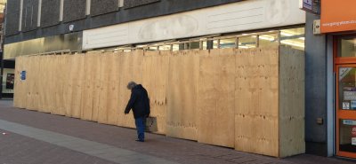 For many, the saddest site on the High Street is that of the former Woolworths and T.J Hughes store. Here’s a shot taken this afternoon, just opposite the two freshly vandalised metal benches.